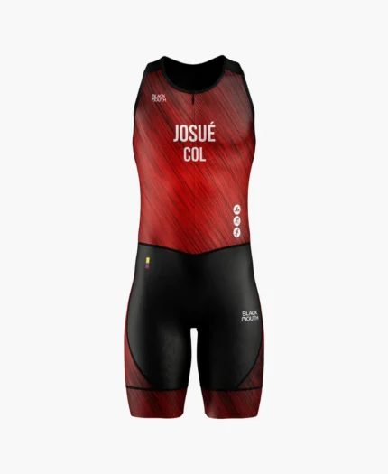 Integra secado rápido, ajuste compresivo y aerodinámica que optimizan la comodidad en competencia. Funciona en distancias sprint, olímpico y media. Disponible como trisuit hombre, trisuit mujer y traje de triatlón personalizado con nombre, país y logos. Disponible en Colombia con Blackmouth Sports.