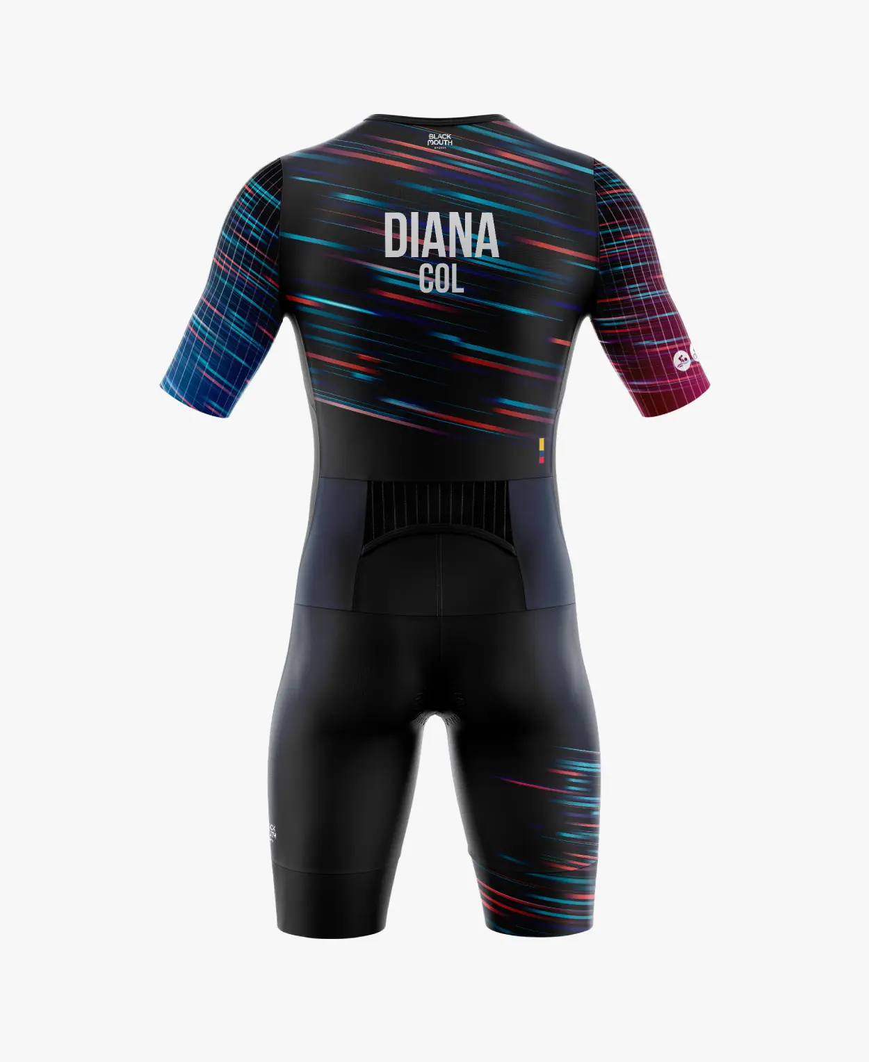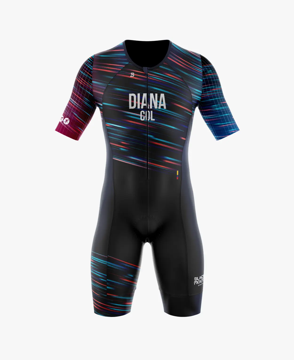 Perfecto para distancias sprint, olímpico, media y larga distancia. Disponible como trisuit hombre y trisuit mujer, este uniforme de triatlón puede personalizarse con nombre, país y logos. Encuentra tu traje de triatlón personalizado en Colombia con Blackmouth Sports.